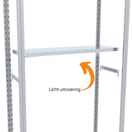 Opzoek naar losse legbordnivea's voor het uitbreiden van een Easy Rack Legbordstelling? Op deze pagina bestel je de volledige set van een extra verdieping. Zo'n set is compleet uitgerust met legbord en dragers. Je kunt kiezen uit de zware of de lichte uitvoering. Het verschil zit hem in het type drager (ook wil ligger genoemd) dat je gebruikt. Let wel op: bij een lichte uitvoering, heb je alsnog wel altijd 2 legborden nodig per sectie die de zware uitvoering hebben. Dit zijn namelijk de onderste en de bovenste legborden! Extra legborden die je toevoegt kunnen dus zowel zwaar, als licht zijn in uitvoering. Wat de voorkeur heeft! Persoonlijk adviseren wij atlijd het gebruik van de zware variant voor de maximale duurzaamheid en gemakkelijkste opbouwen.