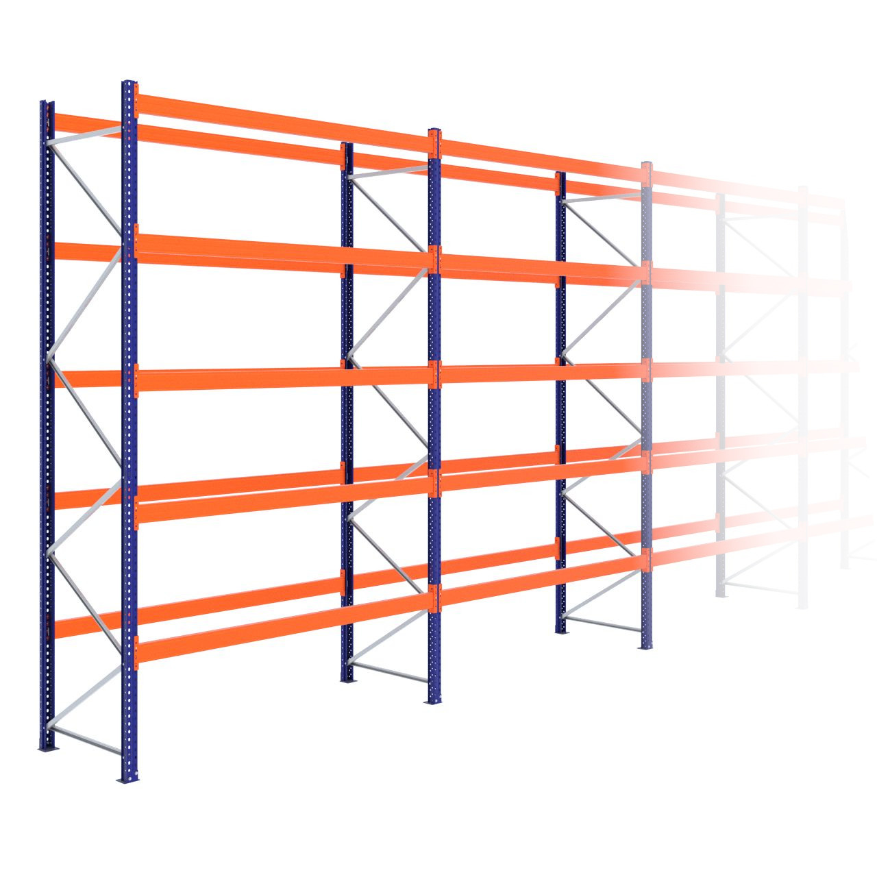Deze palletstelling van 4.500 x 22.400 x 1.100 mm wordt standaard uitgerust met 5 liggerniveaus (Een liggerniveau bestaat uit twee liggers.) De stijlen en voetplaten zijn afgewerkt met RAL 5003 blauw, de liggers zijn afgewerkt in RAL 2004 oranje en de schoringen zijn verzinkt. (De stijlen, voetplaten en liggers zijn voorzien van epoxy polyester.) Wij leveren de staanders voorgemonteerd bij u af, voor gemakkelijke en snelle opbouw bij u op locatie!
