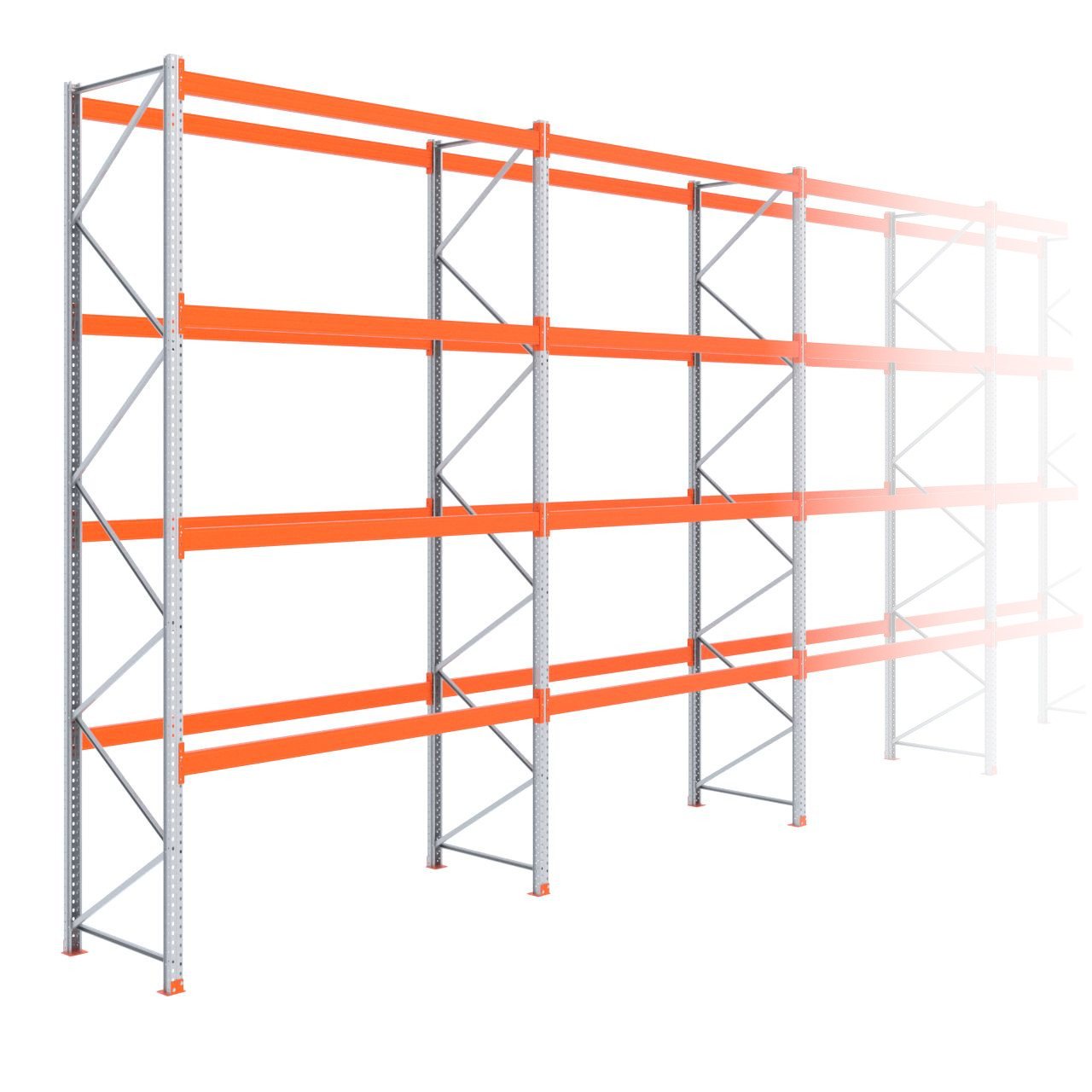 Deze gegalvaniseerde palletstelling van 5.000 x 14.000 x 1.100 mm wordt standaard uitgerust met 4 liggerniveaus (Een liggerniveau bestaat uit twee liggers.) De stijlen en voetplaten zijn gegalvaniseerd (grijs) afgewerkt,, de liggers zijn afgewerkt in RAL 2004 oranje en de schoringen zijn verzinkt. (De stijlen, voetplaten en liggers zijn voorzien van epoxy polyester.) Wij leveren de staanders voorgemonteerd bij u af, voor gemakkelijke en snelle opbouw bij u op locatie!