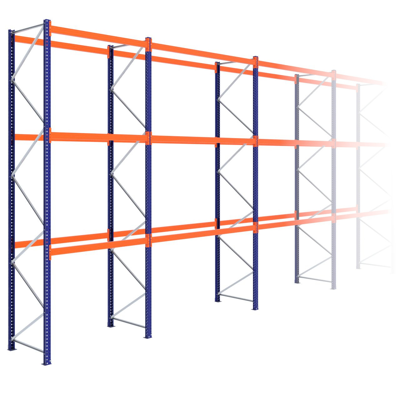 Deze palletstelling van 5.000 x 38.300 x 1.100 mm wordt standaard uitgerust met 3 liggerniveaus (Een liggerniveau bestaat uit twee liggers.) De stijlen en voetplaten zijn afgewerkt met RAL 5003 blauw, de liggers zijn afgewerkt in RAL 2004 oranje en de schoringen zijn verzinkt. (De stijlen, voetplaten en liggers zijn voorzien van epoxy polyester.) Wij leveren de staanders voorgemonteerd bij u af, voor gemakkelijke en snelle opbouw bij u op locatie!