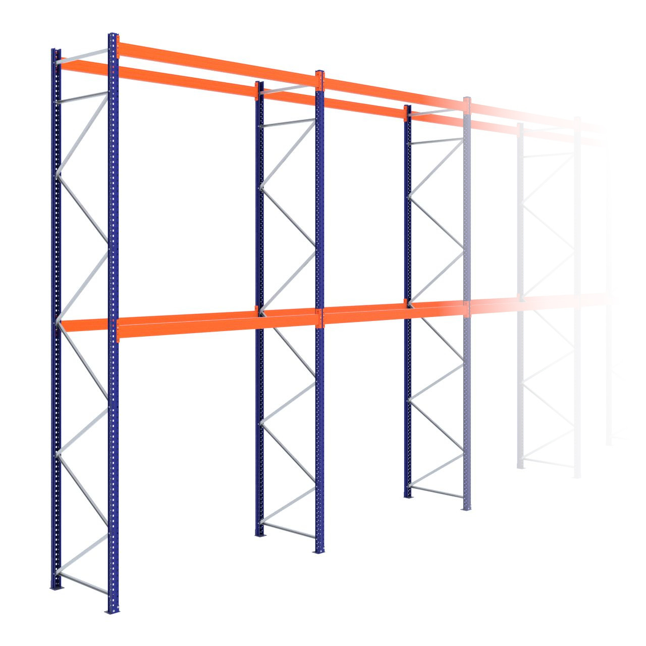Deze palletstelling van 5.500 x 22.400 x 1.100 mm wordt standaard uitgerust met 2 liggerniveaus (Een liggerniveau bestaat uit twee liggers.) De stijlen en voetplaten zijn afgewerkt met RAL 5003 blauw, de liggers zijn afgewerkt in RAL 2004 oranje en de schoringen zijn verzinkt. (De stijlen, voetplaten en liggers zijn voorzien van epoxy polyester.) Wij leveren de staanders voorgemonteerd bij u af, voor gemakkelijke en snelle opbouw bij u op locatie!