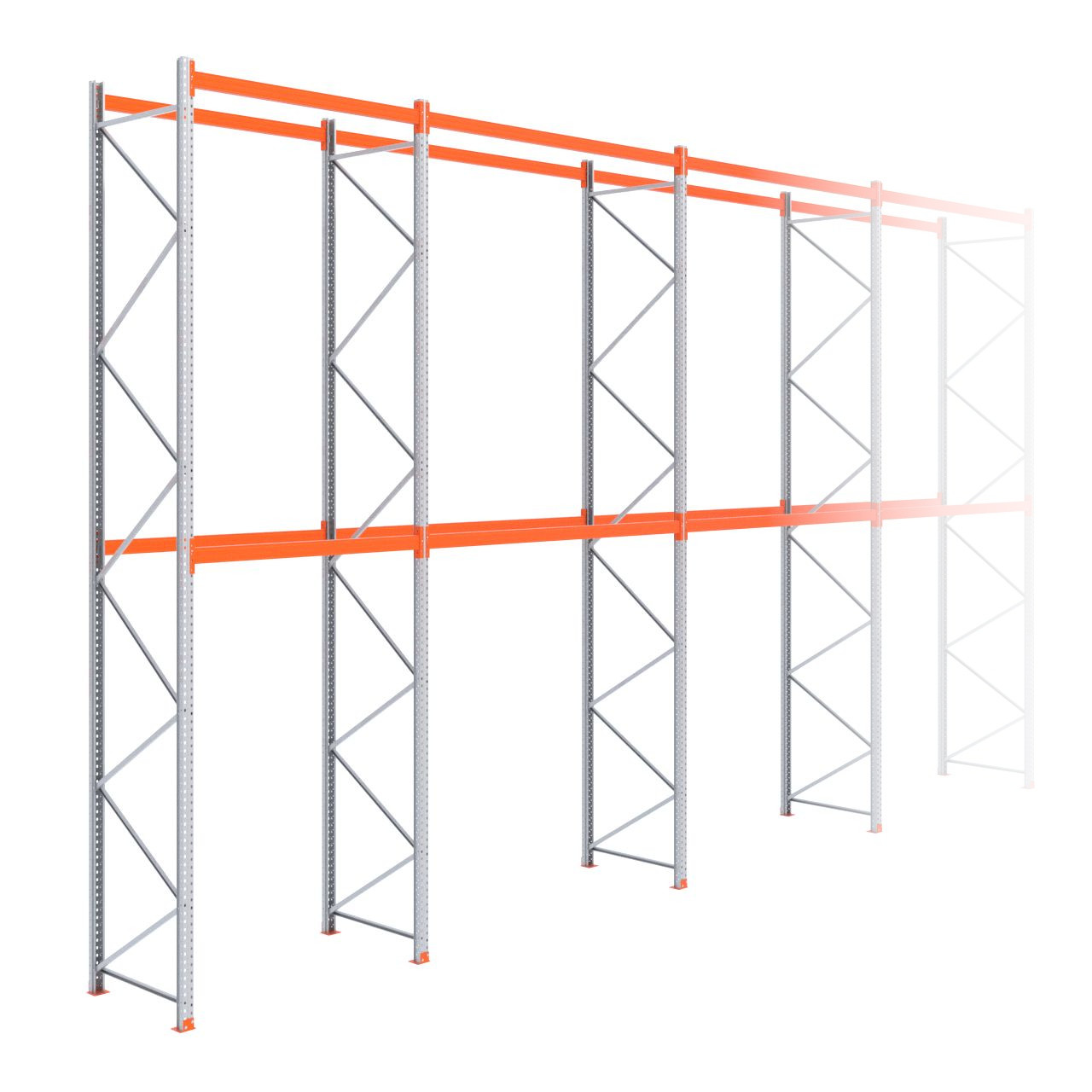 Deze gegalvaniseerde palletstelling van 6.000 x 15.100 x 1.100 mm wordt standaard uitgerust met 2 liggerniveaus (Een liggerniveau bestaat uit twee liggers.) De stijlen en voetplaten zijn gegalvaniseerd (grijs) afgewerkt,, de liggers zijn afgewerkt in RAL 2004 oranje en de schoringen zijn verzinkt. (De stijlen, voetplaten en liggers zijn voorzien van epoxy polyester.) Wij leveren de staanders voorgemonteerd bij u af, voor gemakkelijke en snelle opbouw bij u op locatie!